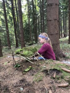 Na chalupě máme spoustu deskových her, potřeby na kreslení a malování, saně a boby, koloběžky, dětské kolo, dětskou postýlku pro děti ve věku zhruba 2-6 let, dětské povlečení a další.