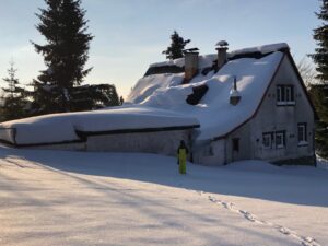 Lyžařský areál Tanvaldský Špičák je vzdálen přibližně 25 minut jízdy autem. Menší lyžařský areál vhodný pro začínající lyžaře se nachází přibližně 15 minut jízdy autem v obci Zásada, menší sjezdovka Filip je vzdálena také přibližně 15 minut jízdy autem. Nejlepší podmínky na běžky jsou v Bedřichově vzdáleném cca 30 minut jízdy autem (za příznivých sněhových podmínek bývá protažený menší okruh v nedaleké Nové Vsi). V Jablonci nad Nisou je zimní stadion s časy bruslení pro veřejnost. Rovněž je okolí možné využít k procházkám, případně i na sněžnicích (na chalupě k dispozici), a s dětmi k jízdě na bobech či saních. Z rozhledny 1 km nad chalupou vede přibližně 4 km dlouhá přírodní sáňkařská dráha, která končí u lyžařského vleku Filip ve Smržovce. Krytý bazén/akvapark v Jablonci